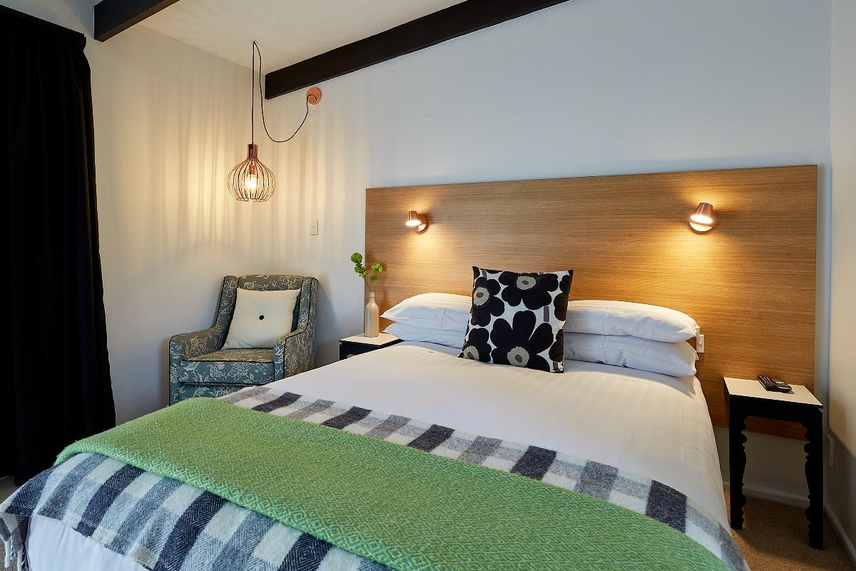 Beds are ultra comfortable queen-plus with superior linen. Interior design is contemporary and fresh. Flat screen televisions, mini bar, fridge, tea & coffee making facilities, New Zealand made luxury bathroom products.