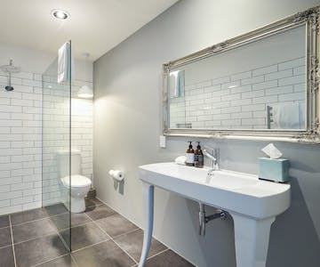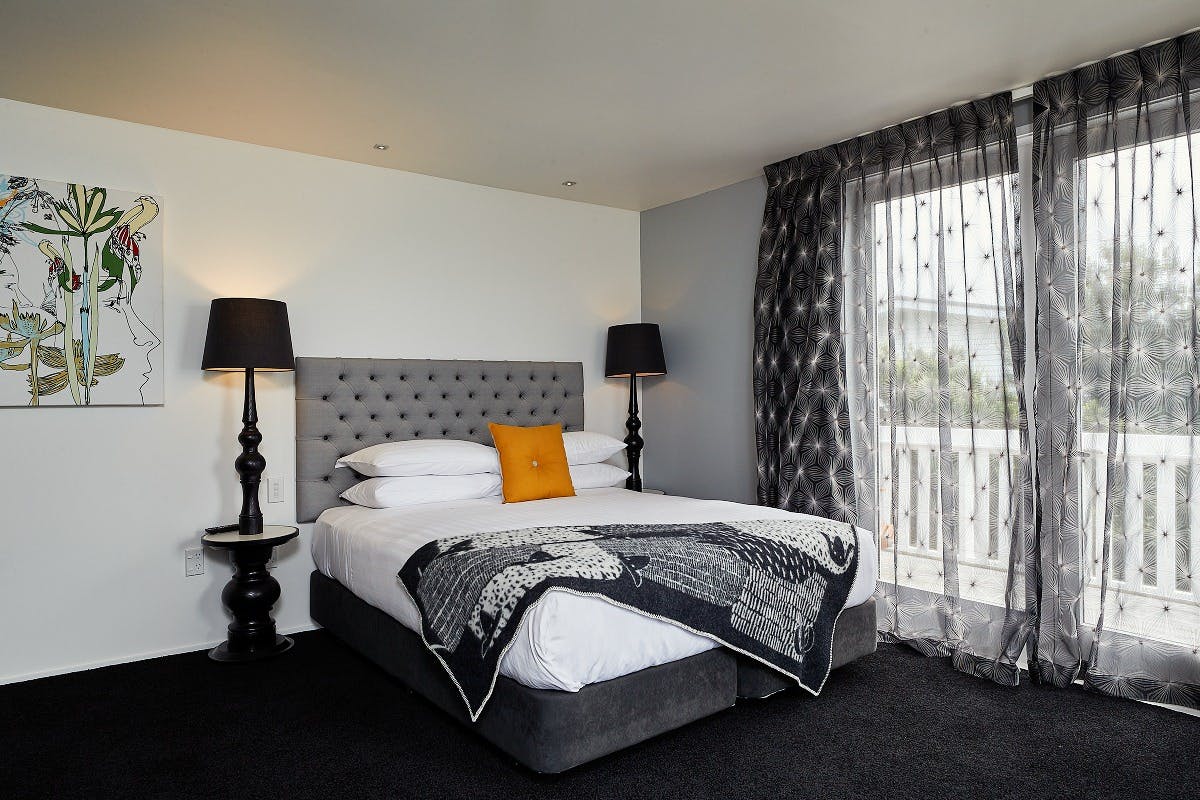 Elegant spacious luxe room with side-on sea views and large balcony. Comfortable king bed, large, tiled bathrooms with rainwater showers, climate-controlled air, luxury bathroom products, smart tv and Wi-Fi.